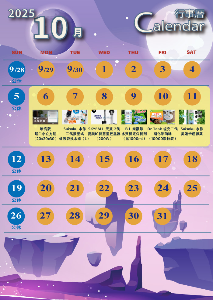 2. 每週行事曆上有各式各樣的優惠商品,公休日會推出配合的特殊贈品搭配贈送唷。