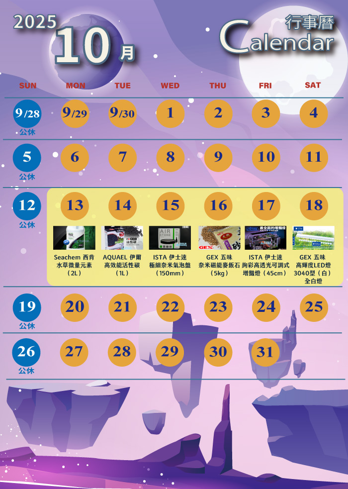2. 每週行事曆上有各式各樣的優惠商品,公休日會推出配合的特殊贈品搭配贈送唷。