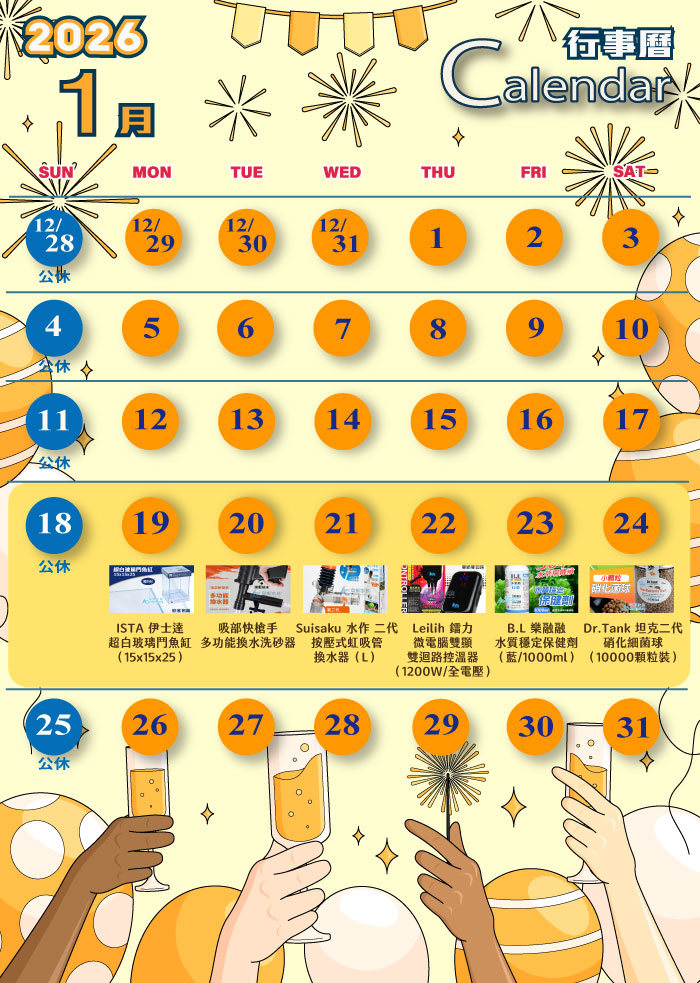 2. 每週行事曆上有各式各樣的優惠商品,公休日會推出配合的特殊贈品搭配贈送唷。