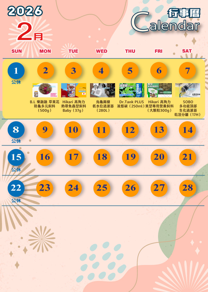 2. 每週行事曆上有各式各樣的優惠商品,公休日會推出配合的特殊贈品搭配贈送唷。