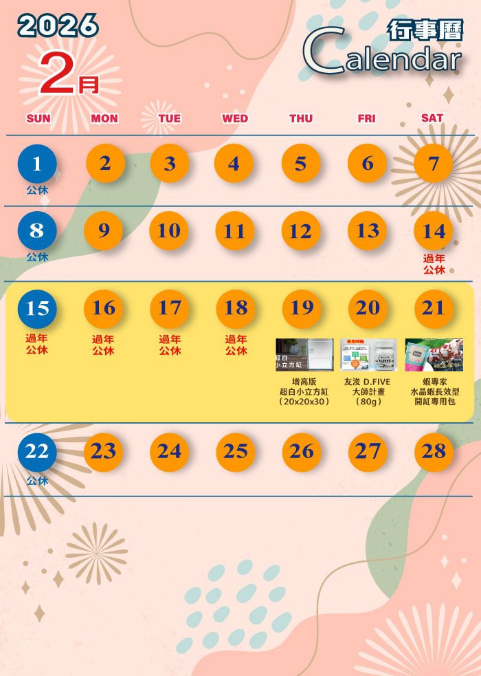2. 每週行事曆上有各式各樣的優惠商品,公休日會推出配合的特殊贈品搭配贈送唷。