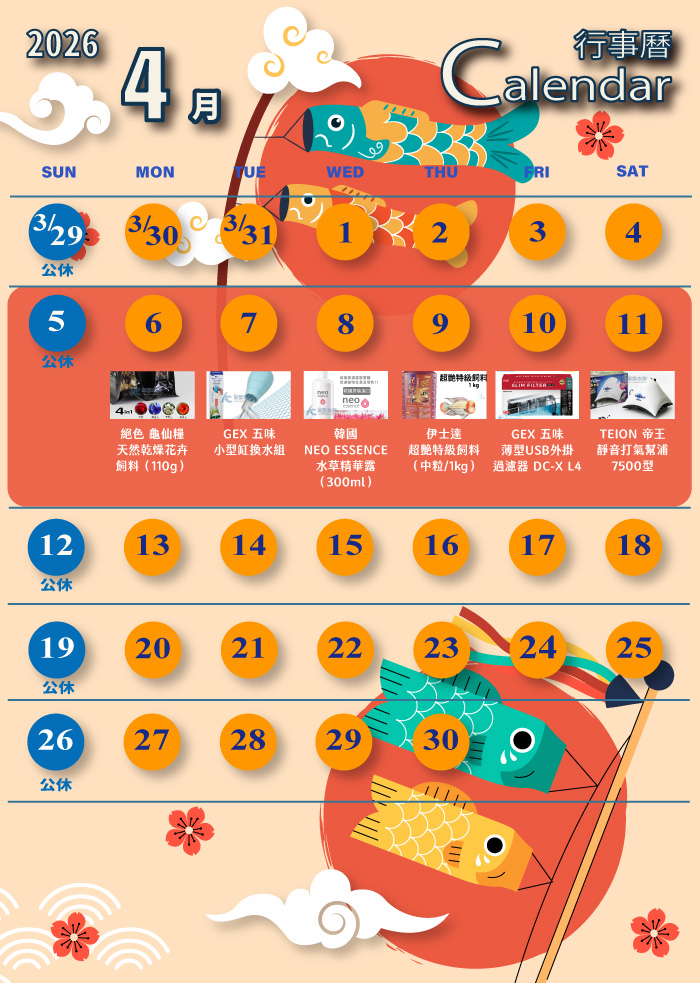 2. 每週行事曆上有各式各樣的優惠商品,公休日會推出配合的特殊贈品搭配贈送唷。