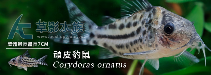 商品屬性 [國際學名] Corydoras ornatus [活體補償] 1. 魚蝦叨穩後出貨,如有運送途中造成死亡,當次死亡於下次訂購時補償,所有螺類部分均無提供補償。