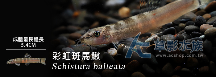 商品屬性 [國際學名] Schistura balteata [活體補償] 1. 魚蝦叨穩後出貨,如有運送途中造成死亡,當次死亡於下次訂購時補償,所有螺類部分均無提供補償。