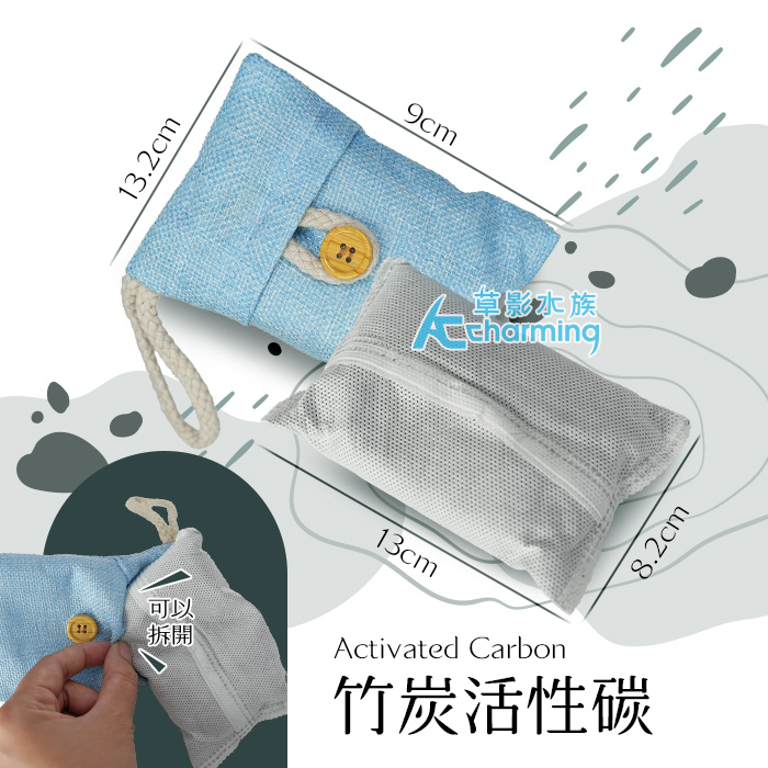 產品名稱:竹炭活性碳 含不織布網袋+掛式棉麻掛包