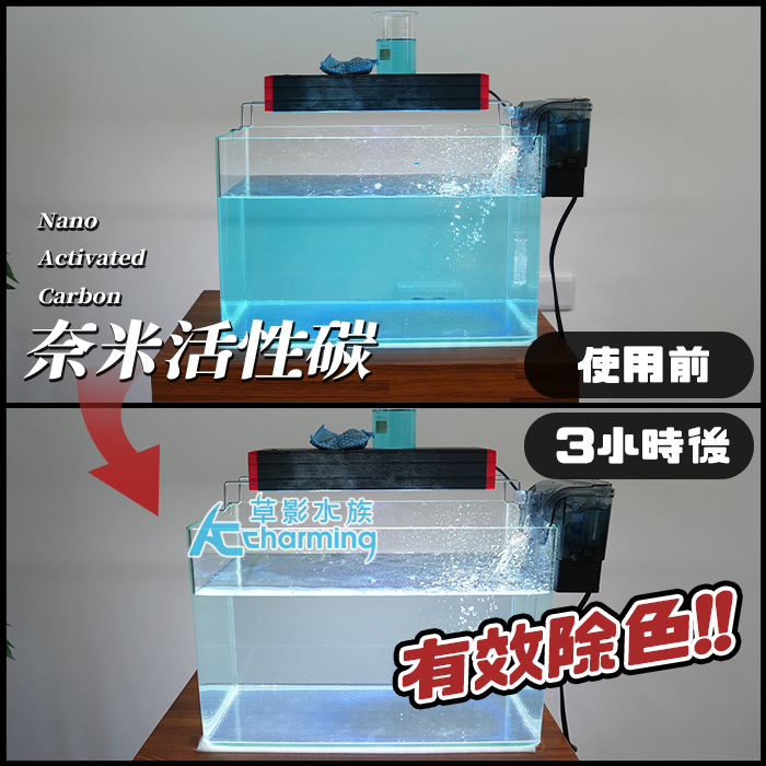 6. 適用在:水色偏黃、茶色水、沉木釋色、魚缸有異味、飼料味重、用藥後需要吸附殘留藥物、新缸初期水質不穩、小型缸、蝦缸、隔離缸、檢疫缸。