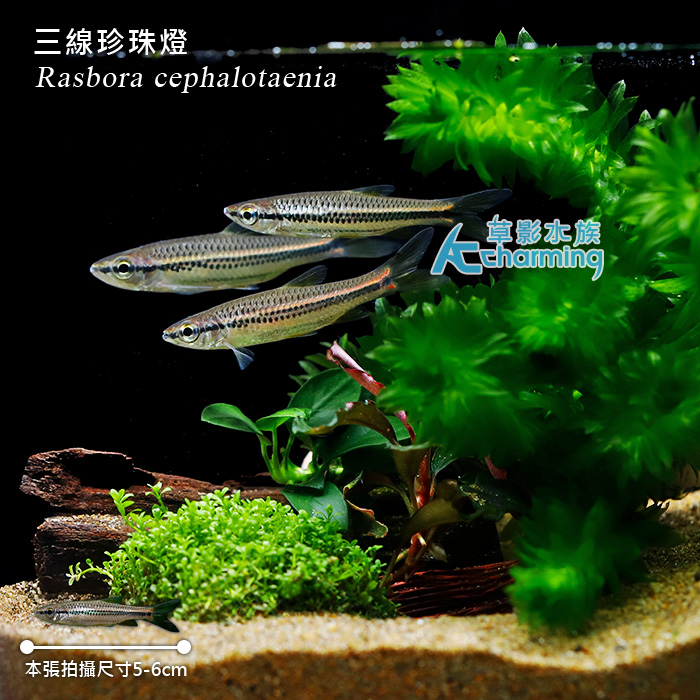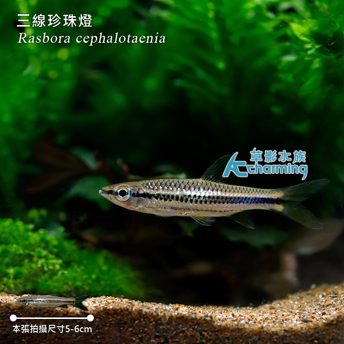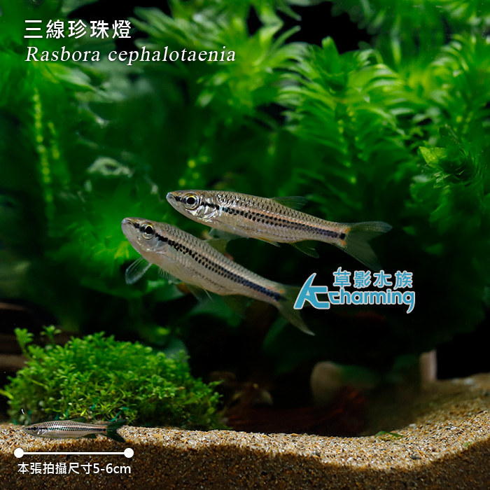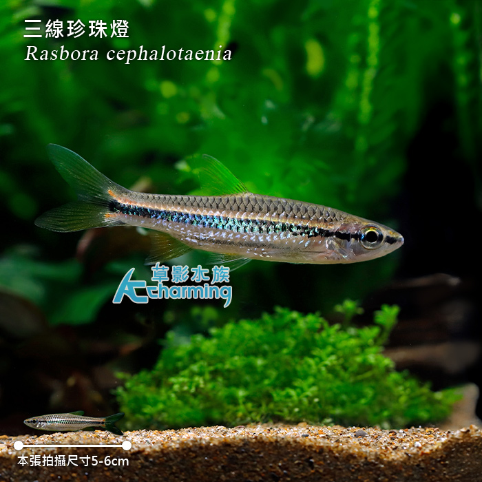 商品屬性 [國際學名] Rasbora cephalotaenia [販賣大小] 約5~6cm [活體補償] 1. 魚蝦叨穩後出貨,如有運送途中造成死亡,當次死亡於下次訂購時補償,所有螺類部分均無提供補償。