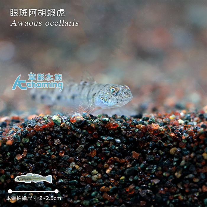 商品屬性 [國際學名] Awaous ocellaris [販賣大小] 約2~2.5cm [活體補償] 1. 魚蝦叨穩後出貨,如有運送途中造成死亡,當次死亡於下次訂購時補償,所有螺類部分均無提供補償。