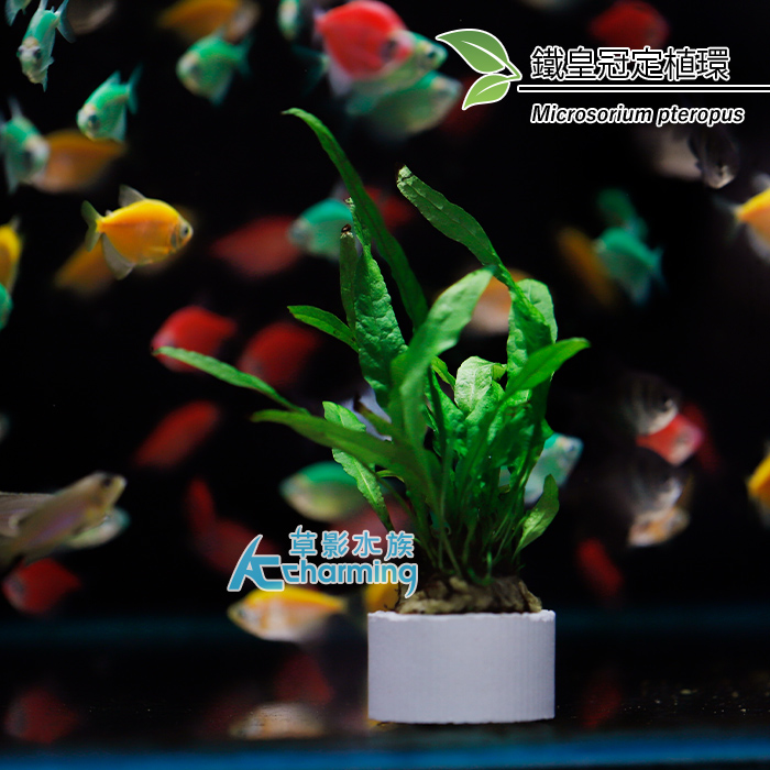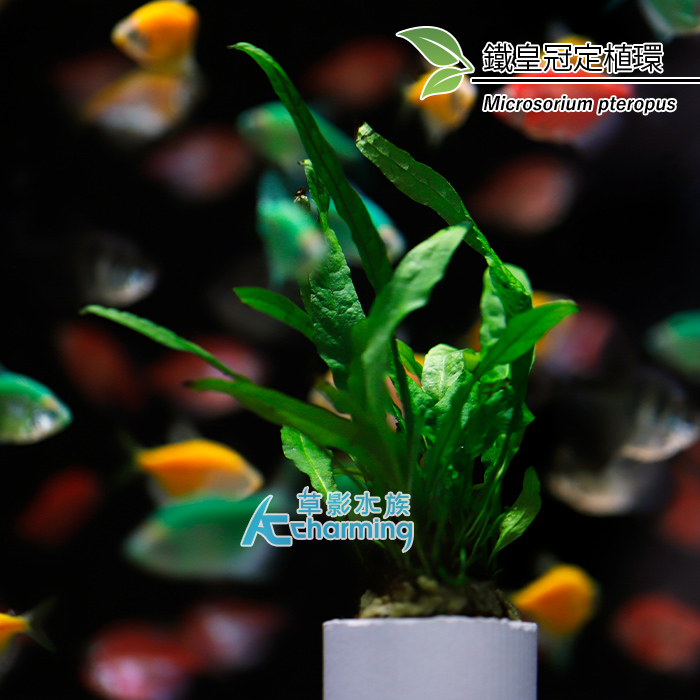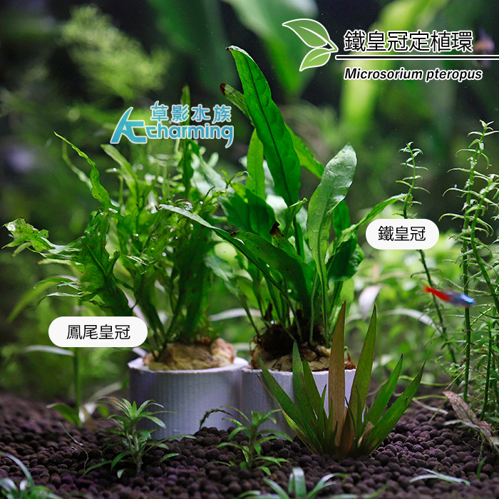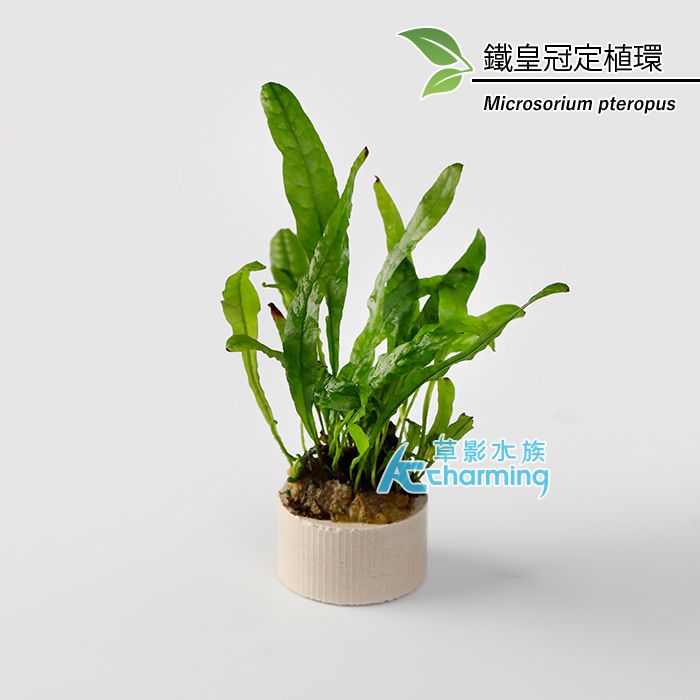 商品屬性 [國際學名] Microsorium pteropus [種植難度] ★ [魚缸建議尺寸] 1.5尺以上 [pH] 5.5~7.5 [kH] 0~15 [GH] 0~15 [溫度] 22~30度 [施肥] 配合水草液肥以及螯合鐵肥使用 [貼心叮嚀] 做為陰性草種的主要成員,鐵皇冠是一株種植非常容易的草種,一般水族館中就不難看見其盆裝水上葉的身影,栽培上只需要注意給予適當的水流以及不要過於混濁的水質就可以種植良好 [單位數量] 一座 [販賣大小] 定植環約4.4x2.5cm