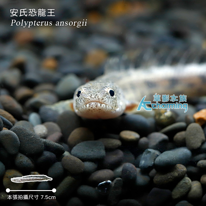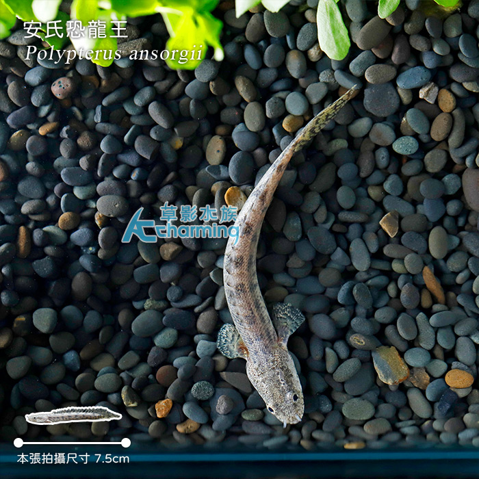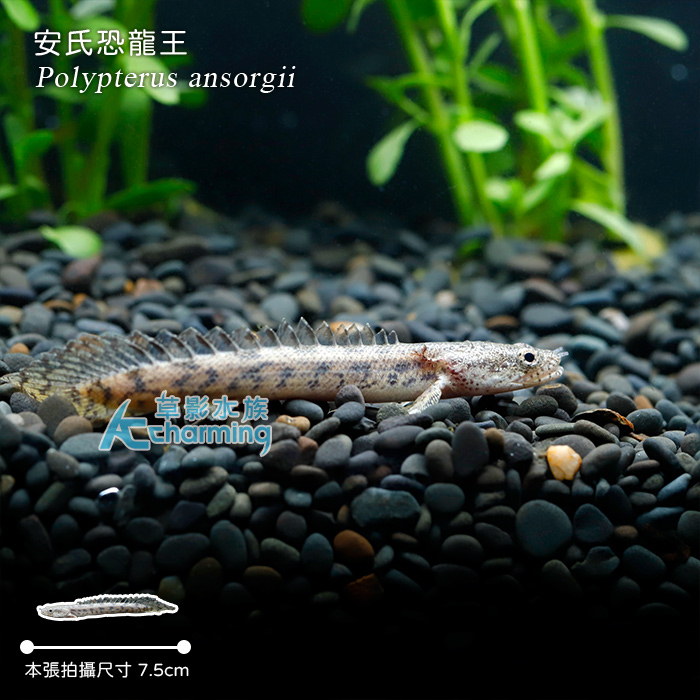 商品屬性 [國際學名] Polypterus ansorgii [販賣大小] 約7.5cm [活體補償] 1. 魚蝦叨穩後出貨,如有運送途中造成死亡,當次死亡於下次訂購時補償,所有螺類部分均無提供補償。