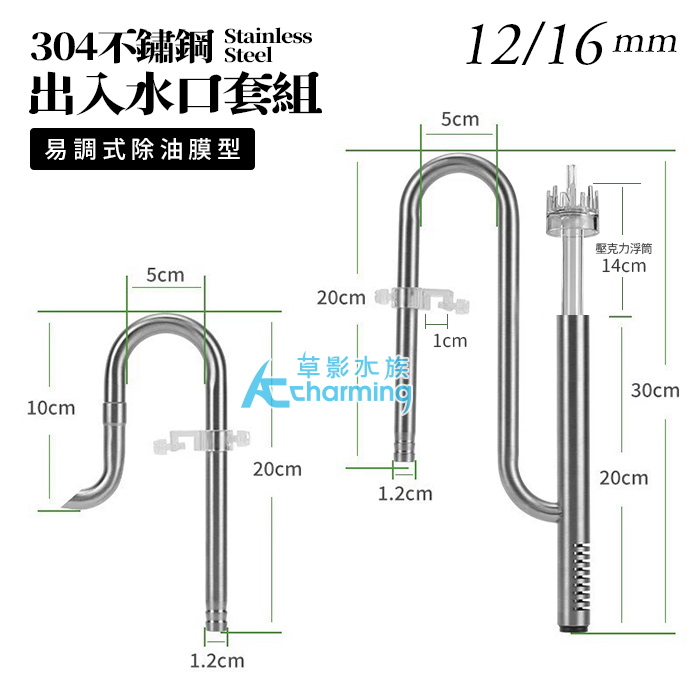 產品名稱:304不鏽鋼 出入水口套組(12/16)易調式除油膜型