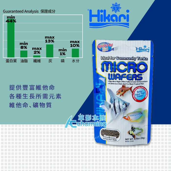 1. 經由密集研究燈科魚、孔雀魚、球魚、慈鯛科等...中小型魚類覓食習性而研發的優質日常飼料。