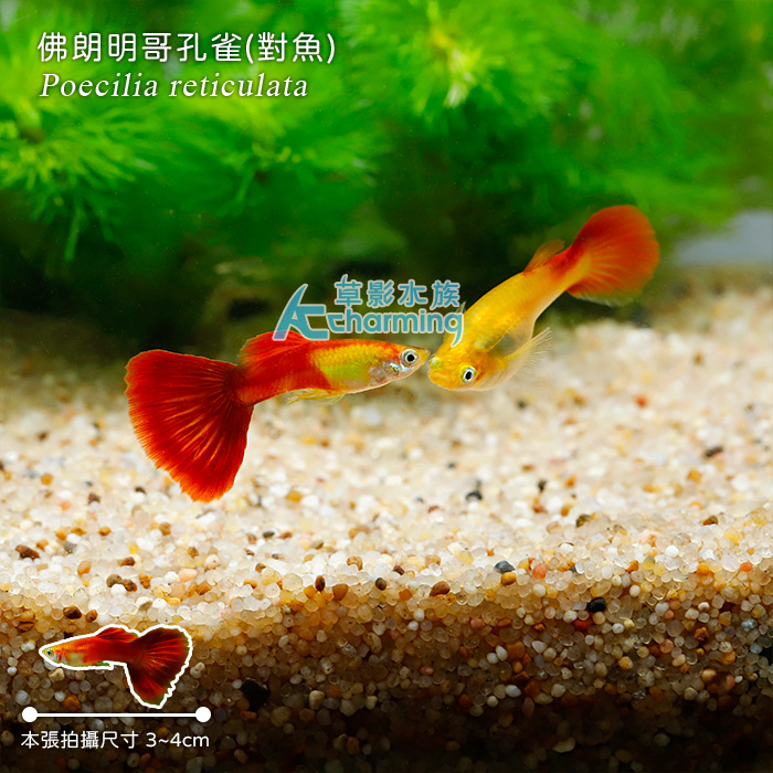 商品屬性 [國際學名] Poecilia reticulata [販賣大小] 約3~4cm [活體補償] 1. 魚蝦叨穩後出貨,如有運送途中造成死亡,當次死亡於下次訂購時補償,所有螺類部分均無提供補償。