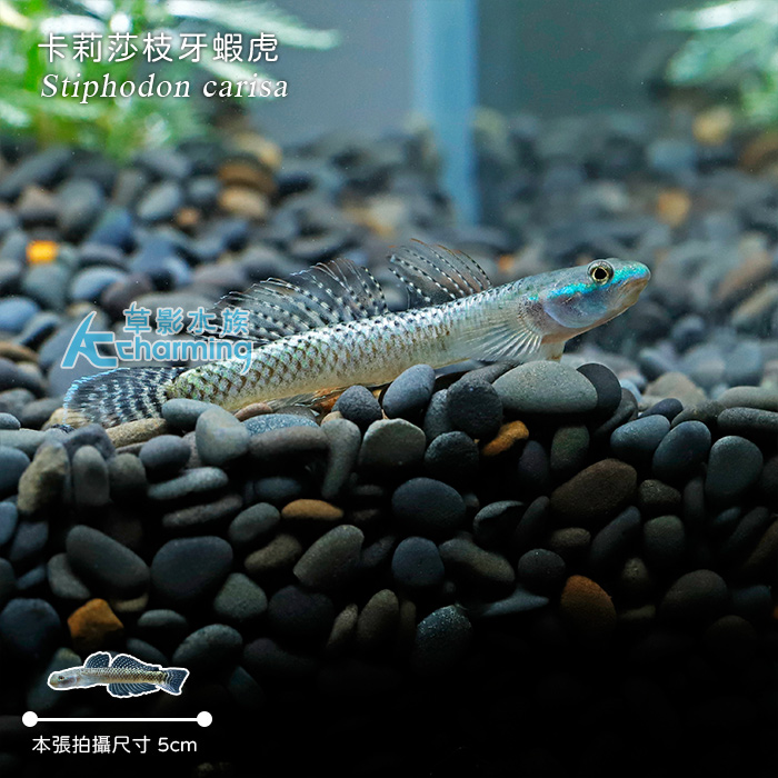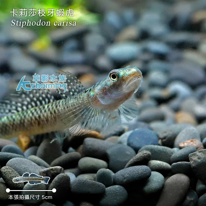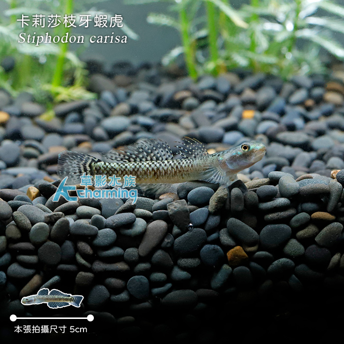 4. 如有活體死亡請於收件後60分鐘內拍照回傳,拍照需包含未拆封的原始魚袋完整包裝。[國際學名] Stiphodon carisa [活體種源] 國外野生品種 [養殖難度] ★★ [PH] 6.0~7.6 [GH] 3~12 [KH] 3~15 [溫度] 20~27度 [單位數量] 一隻