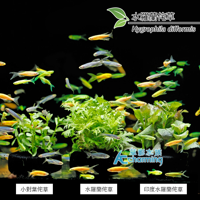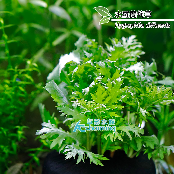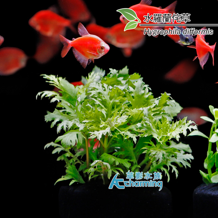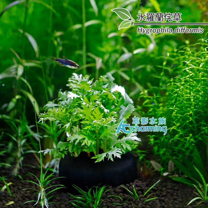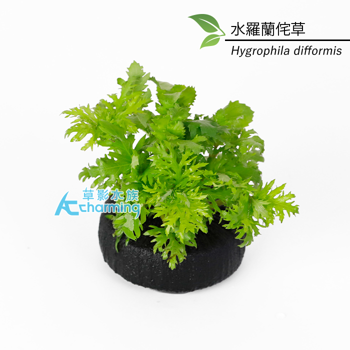 商品屬性 [國際學名] Hygrophila difformis [種植難度] ★ [魚缸建議尺寸] 1尺以上 [pH] 5.5~7.8 [kH] 2~15 [GH] 2~15 [溫度] 21~31度 [貼心叮嚀] 說起水羅蘭,絕對是很多玩家剛踏入水草缸最容易接觸的水草,栽培容易上手,沒有CO2也可順利育成。此株水上葉的葉型圓,水中葉的葉型有帶明顯裂葉,因為生長速度快,在大量種植時要注意肥份的供給,否則小缸就很容易出現養分失調的情況。 [單位數量] 一棵 [販賣大小] 陀草基座直徑約7cm