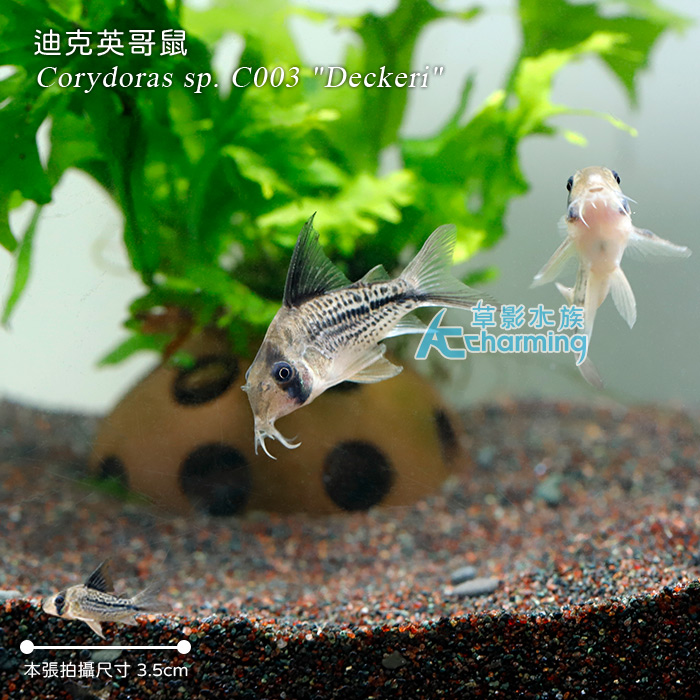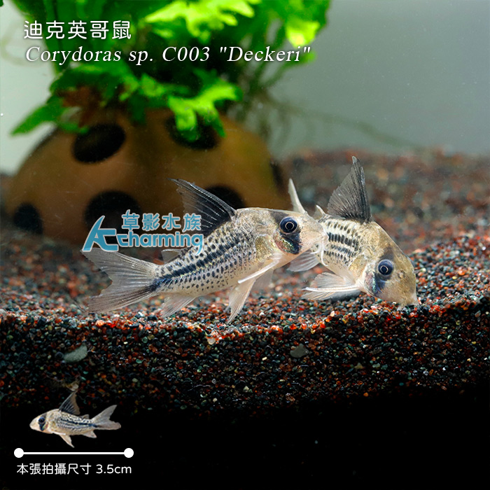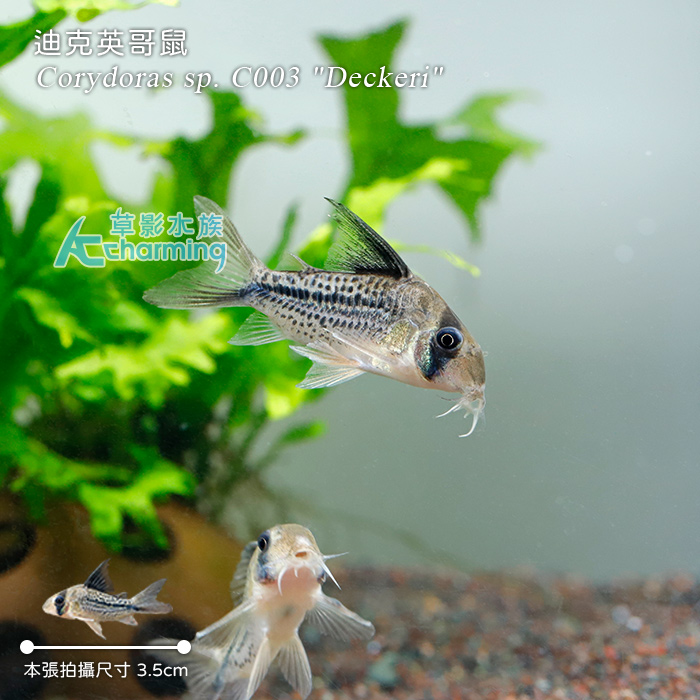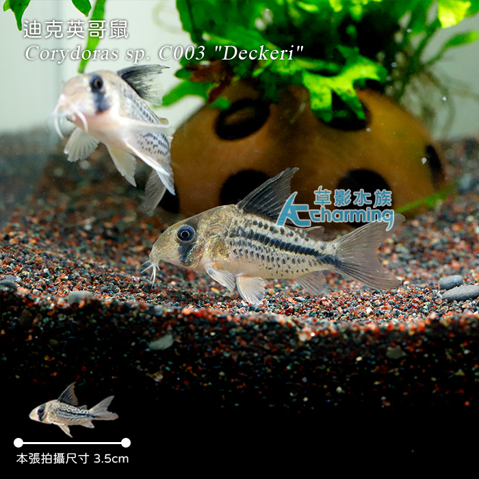 4. 如有活體死亡請於收件後60分鐘內拍照回傳,拍照需包含未拆封的原始魚袋完整包裝。[活體種源] 國外野生品種 [養殖難度] ★★ [PH] 6.0~7.5 [GH] 2~13 [KH] 2~15 [溫度] 21~27度 [單位數量] 一隻 [國際學名] Corydoras sp. C003 "Deckeri"