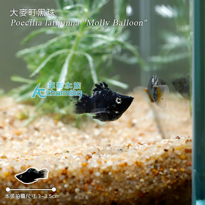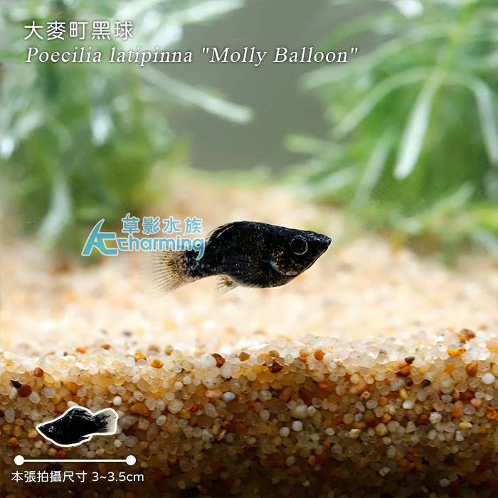 4. 如有活體死亡請於收件後60分鐘內拍照回傳,拍照需包含未拆封的原始魚袋完整包裝。[販賣大小] 約2-2.5公分 [國際學名] Poecilia latipinna "Molly Balloon"