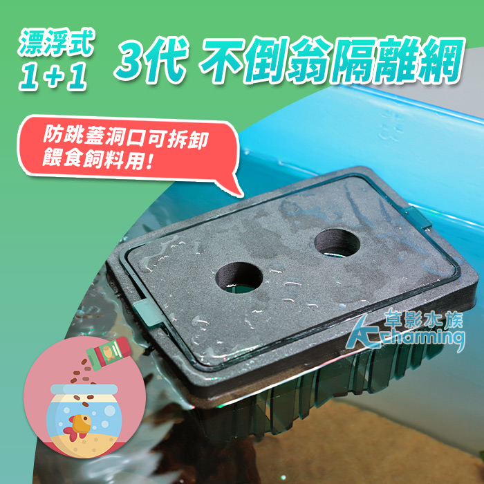 4. 防跳上蓋設計:黑色防跳蓋有效阻擋魚隻跳出,且預留「可拆式餵食孔」,直接投餵飼料超方便。