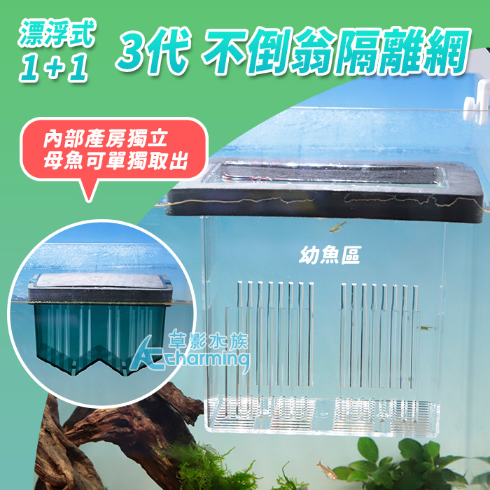 2. 1+1雙層結構:內部獨立產房+外層幼魚區,母魚與幼魚可分離照顧,降低被吃掉的風險。