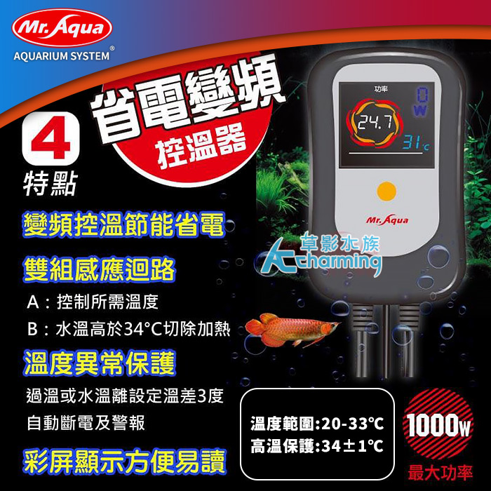 產品名稱:Mr.aqua 水族先生 微電腦彩屏 省電變頻控溫器(1000W)