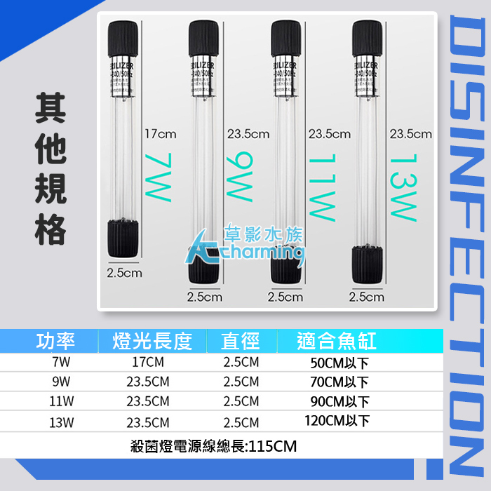 7. 不適合安裝在魚缸內!請將殺菌燈安裝在底濾、側濾或者背濾中隔開使用。