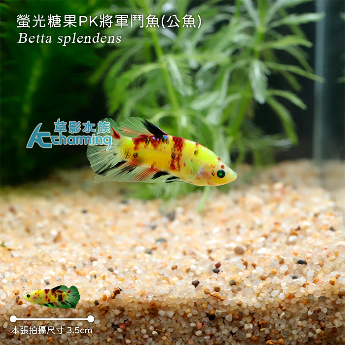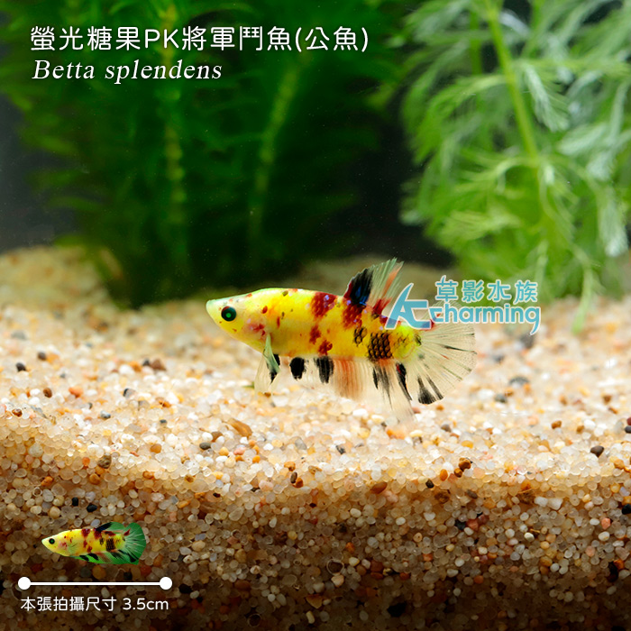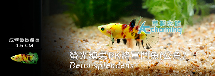 商品屬性 [國際學名] Betta splendens [販賣大小] 不分公母,隨機出貨 [活體補償] 1. 魚蝦叨穩後出貨,如有運送途中造成死亡,當次死亡於下次訂購時補償,所有螺類部分均無提供補償。