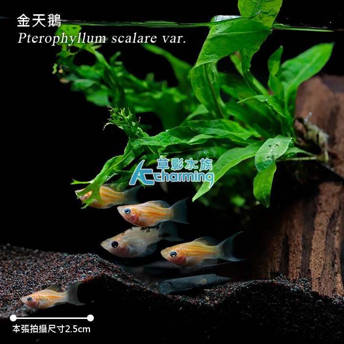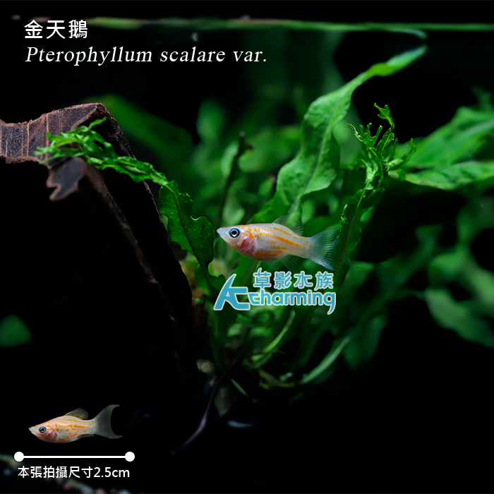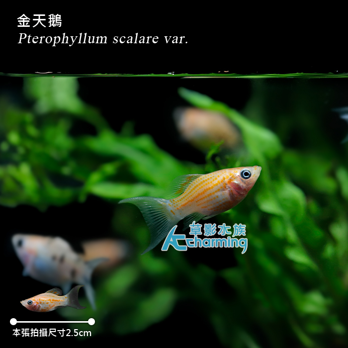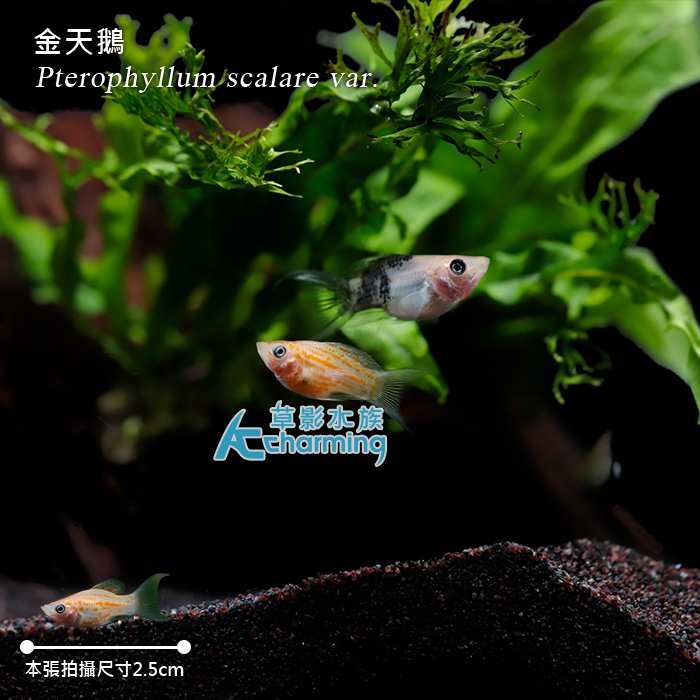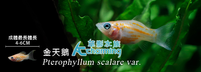 商品屬性 [國際學名] Pterophyllum scalare var. [販賣大小] 不分公母,隨機出貨 [活體補償] 1. 魚蝦叨穩後出貨,如有運送途中造成死亡,當次死亡於下次訂購時補償,所有螺類部分均無提供補償。