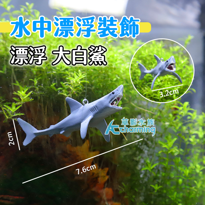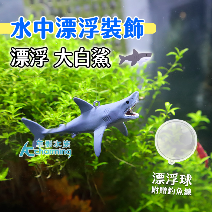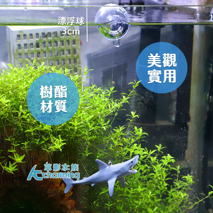 7. 不需要任何設備、不用電,調整線長就能控制大白鯊在水中的高度與位置— —放進去立刻有感,非常適合想做「海洋感/掠食者主題/趣味風格」的水族玩家。