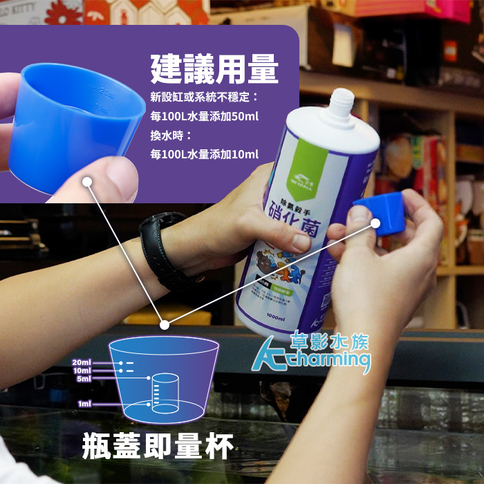 1. 新設缸或系統不穩定:每 100 公升水量添加 50 毫升。