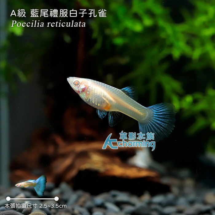 商品屬性 [國際學名] Poecilia reticulata [活體種源] 人工繁殖品種 [養殖難度] ★ [貼心叮嚀] 純品係孔雀,大尾帶金屬反射光,養殖上注意不要與過於活潑的魚種飼養,否則可能會有因為被追尾導致破鰭的狀況出現。 [PH] 6.0~7.8 [GH] 5~15 [KH] 5~18 [溫度] 23~30度 [單位數量] 一對 [活體補償] 1. 魚蝦叨穩後出貨,如有運送途中造成死亡,當次死亡於下次訂購時補償,所有螺類部分均無提供補償。