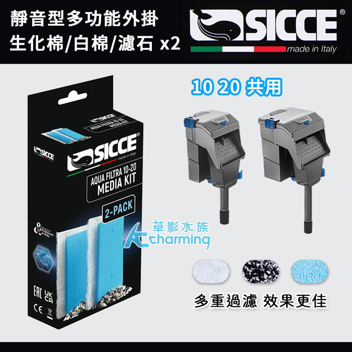 產品名稱:SICCE 希捷 靜音型多功能外掛10 20 生化棉2+白棉2+濾石2