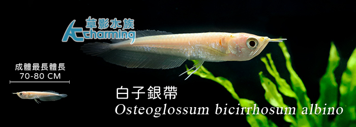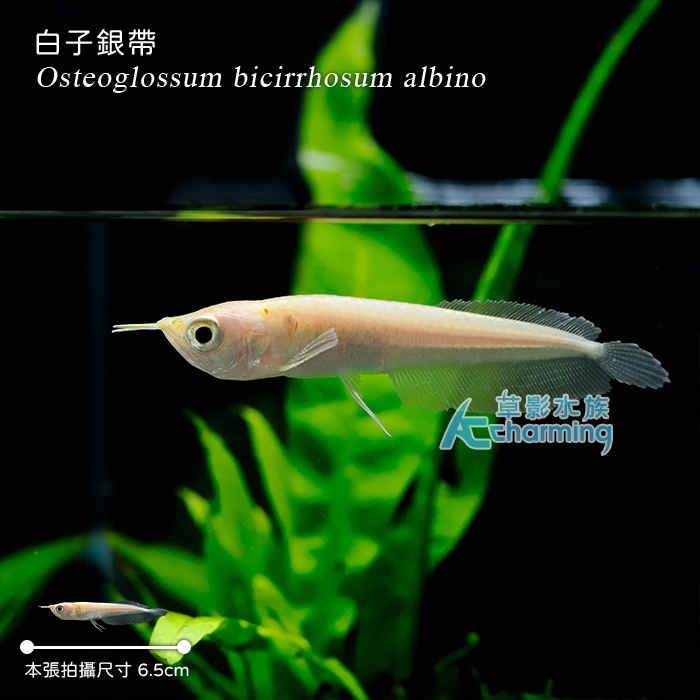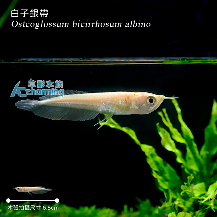 商品屬性 [國際學名] Osteoglossum bicirrhosum albino [販賣大小] 不分公母,隨機出貨 [活體補償] 1. 魚蝦叨穩後出貨,如有運送途中造成死亡,當次死亡於下次訂購時補償,所有螺類部分均無提供補償。