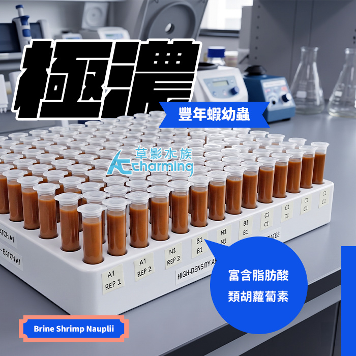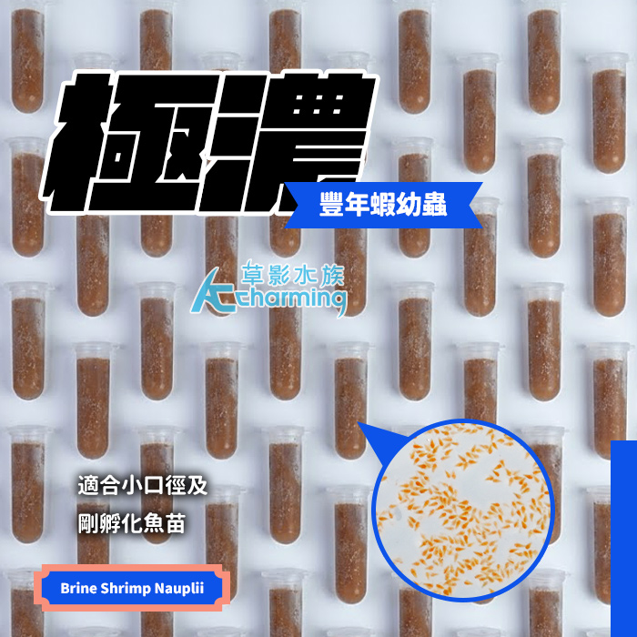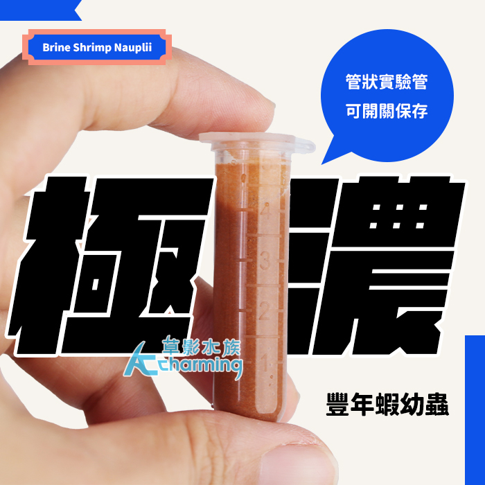 1. 極濃豐年蝦幼蟲,專為魚苗、小型魚與小口徑魚種設計,採用冷凍保存與獨立管裝方式,取用方便、保存更簡單。