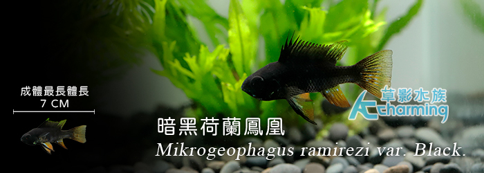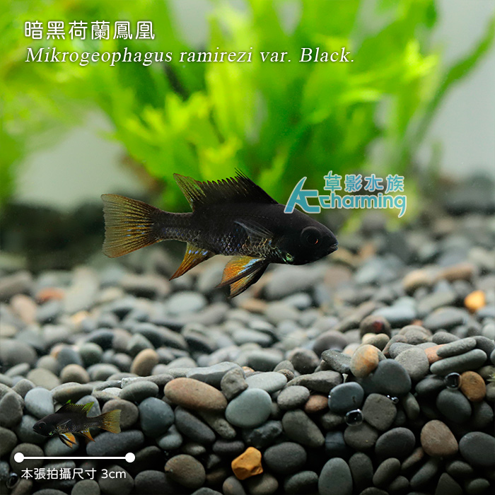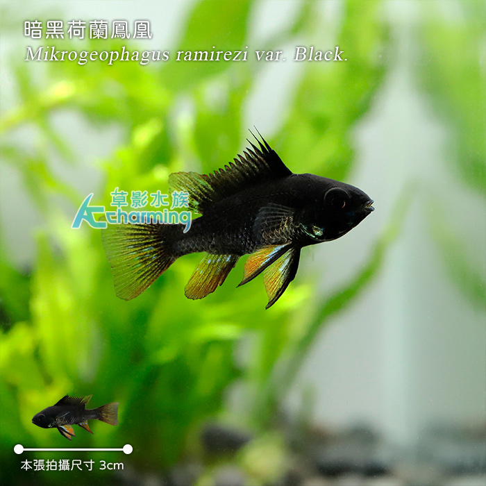 4. 如有活體死亡請於收件後60分鐘內拍照回傳,拍照需包含未拆封的原始魚袋完整包裝。[國際學名] Mikrogeophagus ramirezi var. Black [活體種源] 國外繁殖品種 [養殖難度] ★★ [單位數量] 一隻 [PH] 6.0~7.5 [GH] 0~8 [KH] 0~10 [溫度] 22~27度
