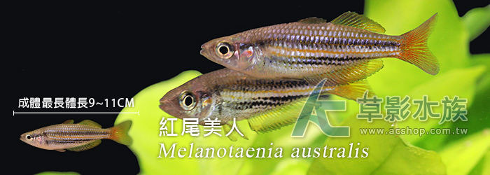 商品屬性 [國際學名] Melanotaenia australis [活體補償] 1. 魚蝦叨穩後出貨,如有運送途中造成死亡,當次死亡於下次訂購時補償,所有螺類部分均無提供補償。