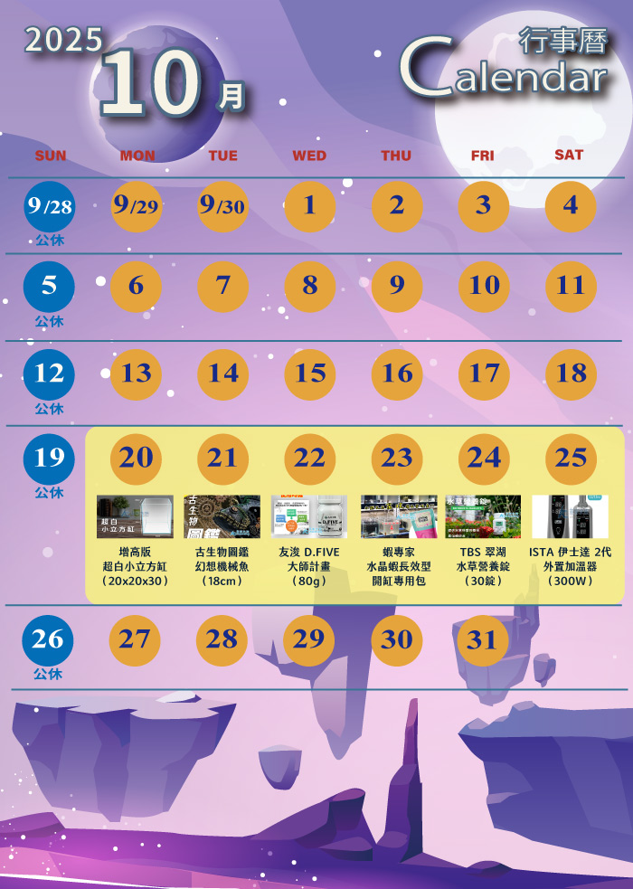 2. 每週行事曆上有各式各樣的優惠商品,公休日會推出配合的特殊贈品搭配贈送唷。