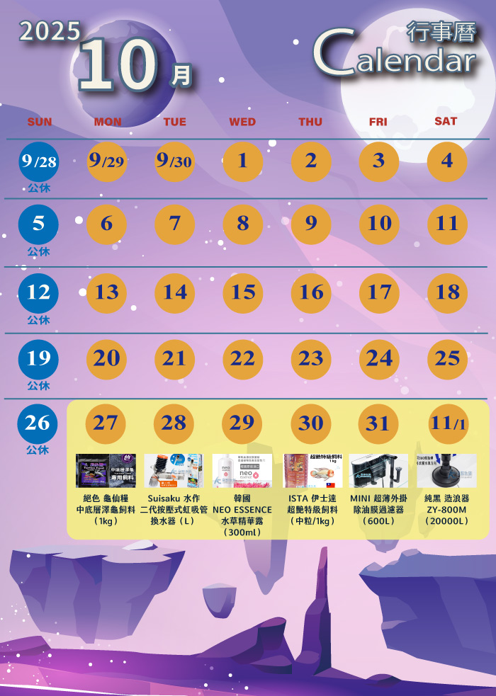2. 每週行事曆上有各式各樣的優惠商品,公休日會推出配合的特殊贈品搭配贈送唷。