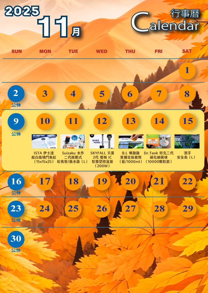 2. 每週行事曆上有各式各樣的優惠商品,公休日會推出配合的特殊贈品搭配贈送唷。