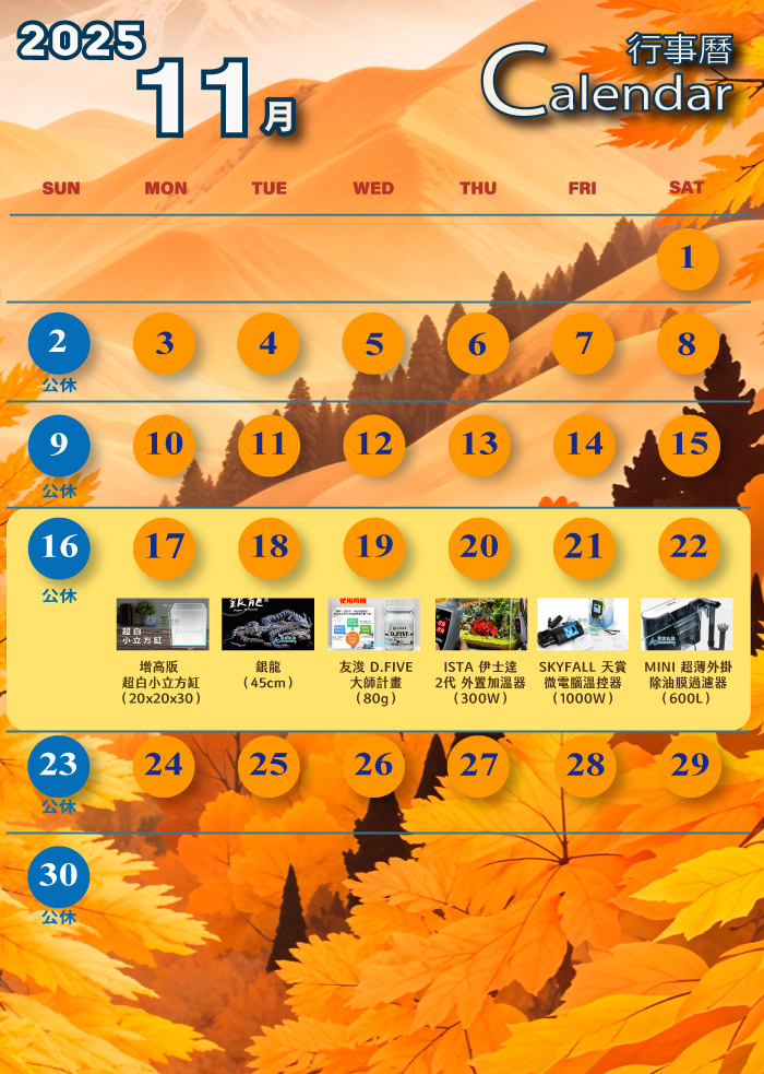 2. 每週行事曆上有各式各樣的優惠商品,公休日會推出配合的特殊贈品搭配贈送唷。