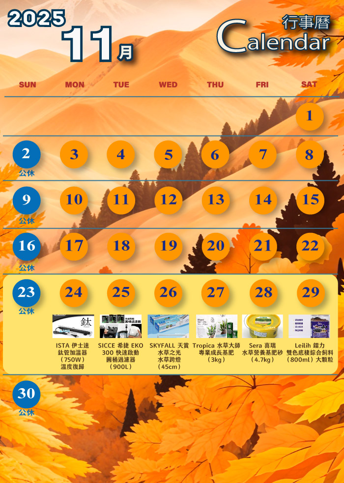 2. 每週行事曆上有各式各樣的優惠商品,公休日會推出配合的特殊贈品搭配贈送唷。