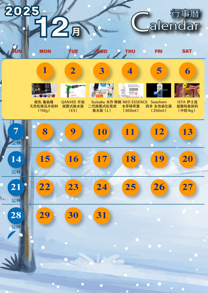 2. 每週行事曆上有各式各樣的優惠商品,公休日會推出配合的特殊贈品搭配贈送唷。