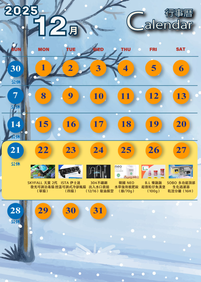 2. 每週行事曆上有各式各樣的優惠商品,公休日會推出配合的特殊贈品搭配贈送唷。