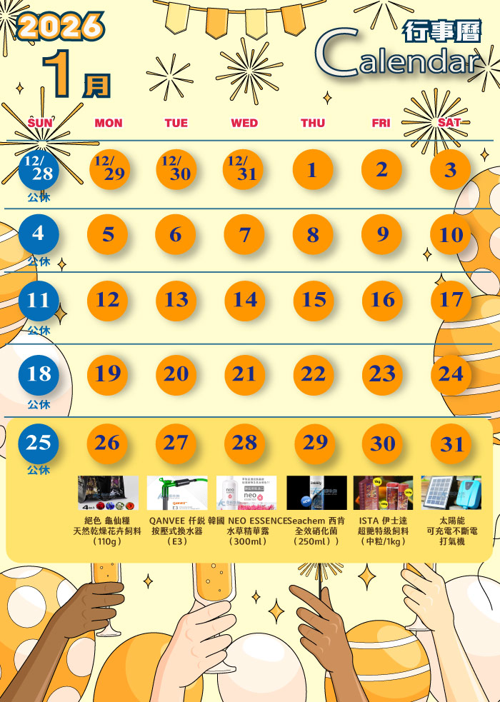 2. 每週行事曆上有各式各樣的優惠商品,公休日會推出配合的特殊贈品搭配贈送唷。
