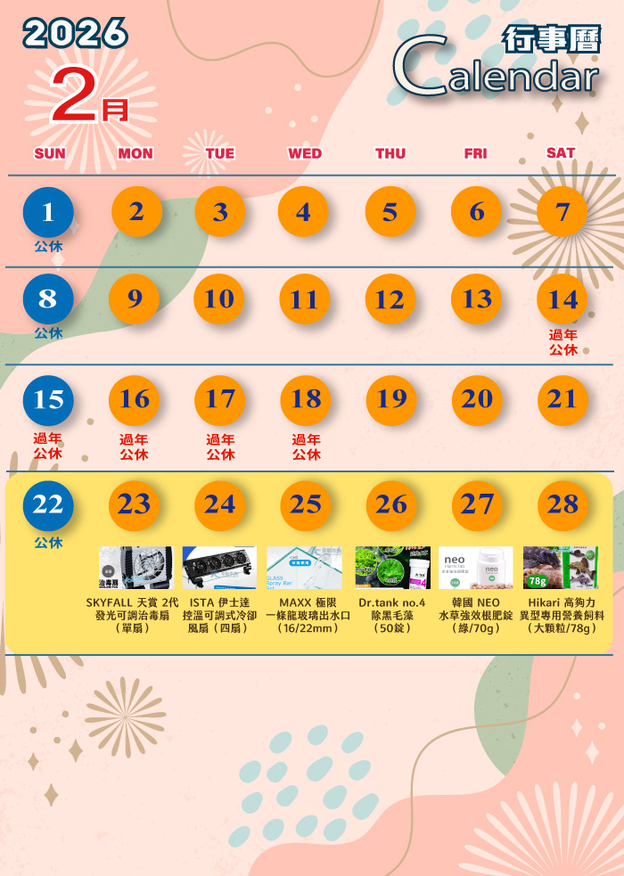 2. 每週行事曆上有各式各樣的優惠商品,公休日會推出配合的特殊贈品搭配贈送唷。