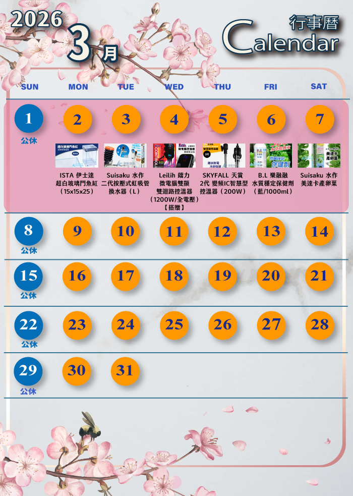 2. 每週行事曆上有各式各樣的優惠商品,公休日會推出配合的特殊贈品搭配贈送唷。