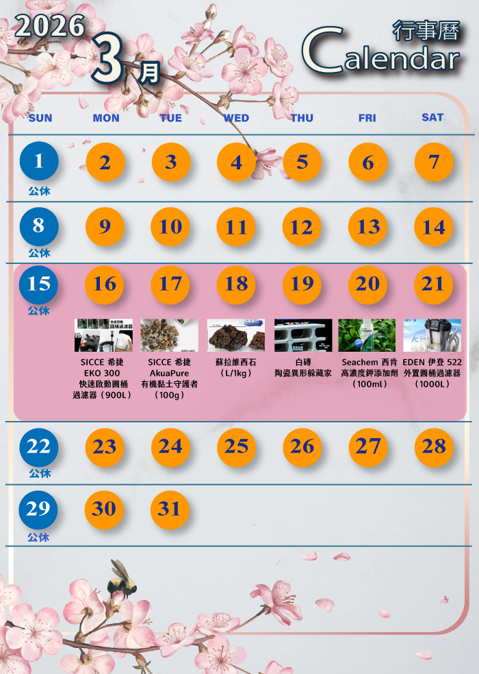2. 每週行事曆上有各式各樣的優惠商品,公休日會推出配合的特殊贈品搭配贈送唷。