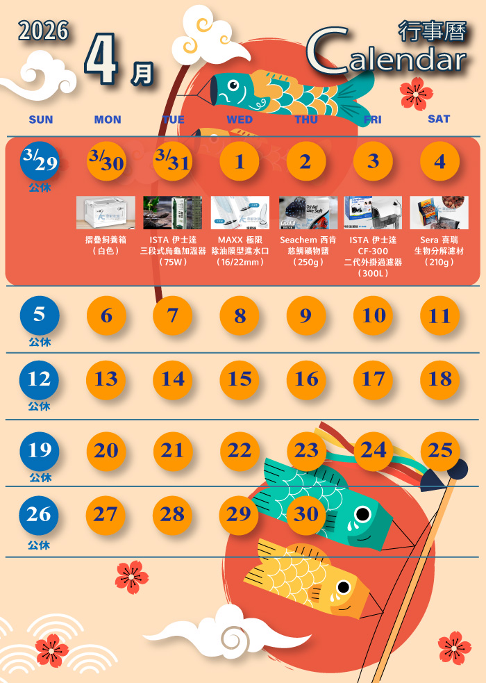 2. 每週行事曆上有各式各樣的優惠商品,公休日會推出配合的特殊贈品搭配贈送唷。