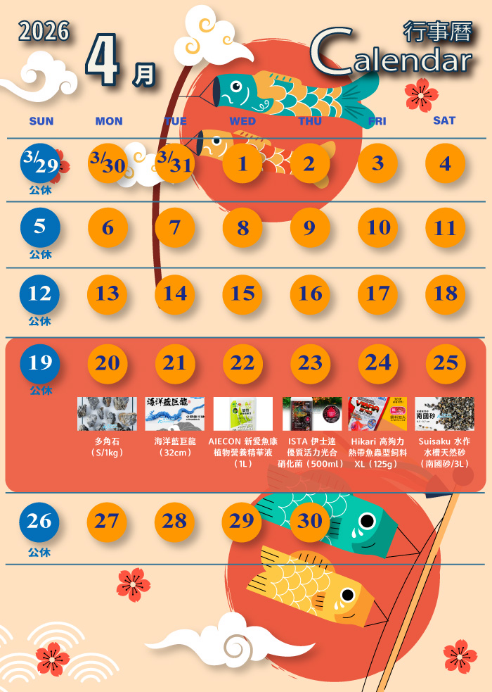 2. 每週行事曆上有各式各樣的優惠商品,公休日會推出配合的特殊贈品搭配贈送唷。