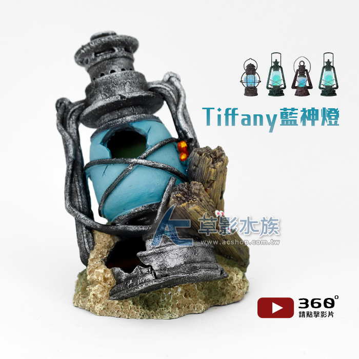 1. Tiffany藍神燈,特色造景,做工細緻精美,幫您的魚缸造景增添美麗風采。