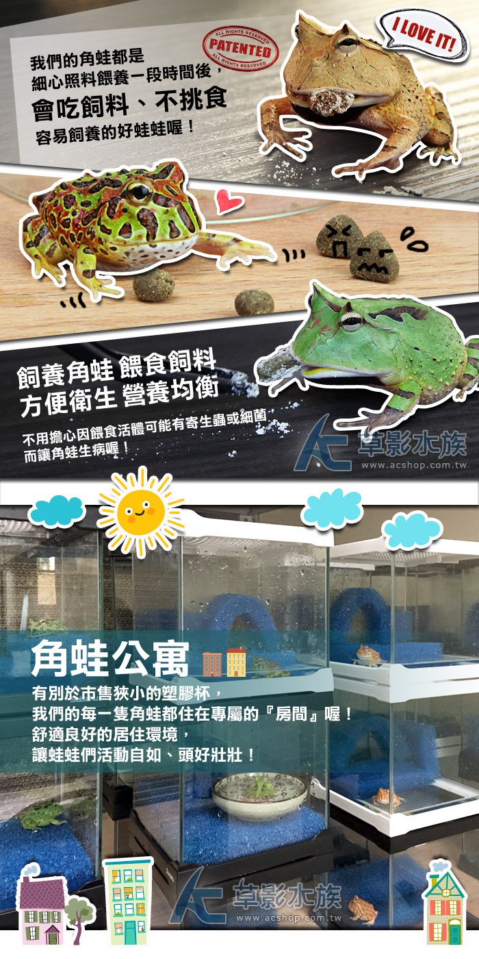 商品屬性 [國際學名] Ceratophrys cranwelli [活體補償] 1. 魚蝦叨穩後出貨,如有運送途中造成死亡,當次死亡於下次訂購時補償,所有螺類部分均無提供補償。